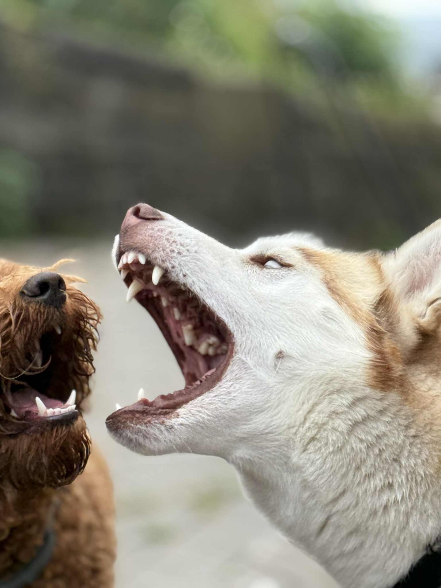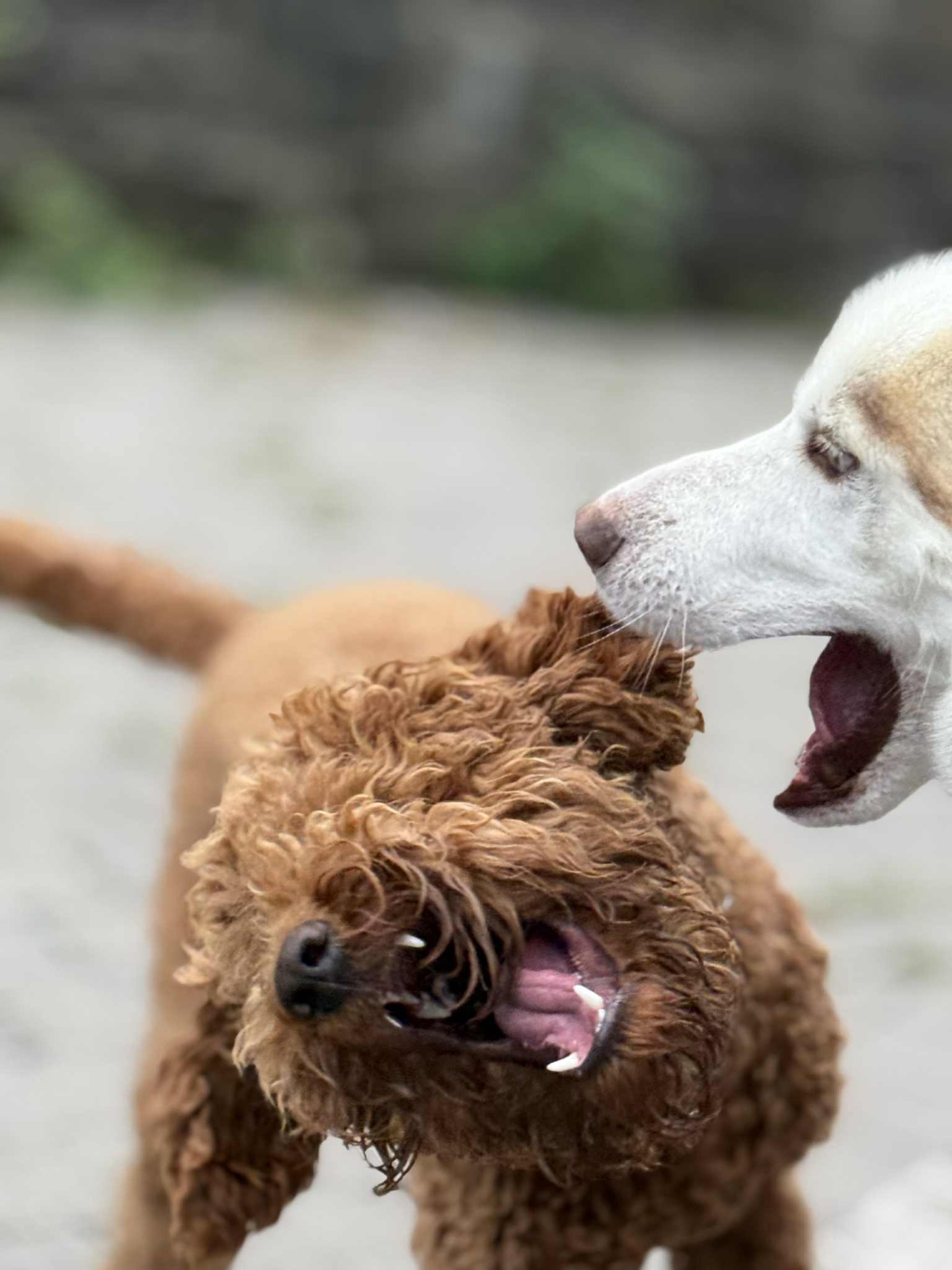 Hvordan var så by-tilværelsen?.......Her stilte den energiske Bowie opp. Hun er en Copper-dog-jente som bare ville leke.....voldsomt.....Bowie vokser opp i en inngjerdet hage, så her kunne de "slåss" i det uendelige....det vil si helt til Sherpa meldte pass. Han skal ha for tålmodighet, altså.....