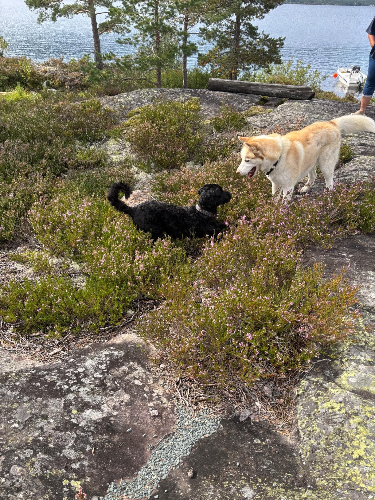 I Vrådal var han i sitt rette element. Her kunne han boltre seg blant lyng og fururabber med sin nye venninne, Luna. Begge var litt forbeholdne til det våte elementet, så de matchet bra på det punktet også. Men en liten dypp i Vråvatn ble det til....