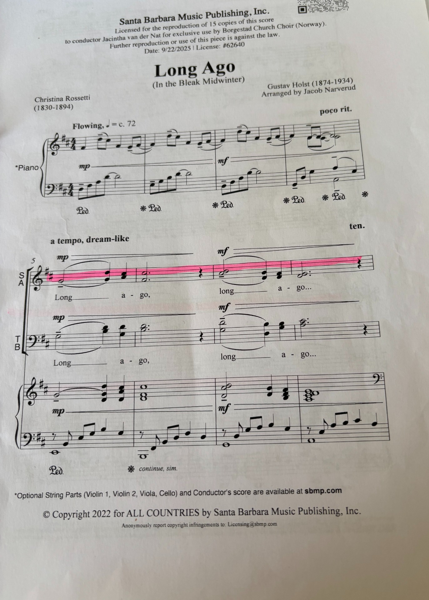 Men så var det vel noe med Mozart-effekten - var det ikke sånn at man ble smartere av å lytte til og utøve musikk? Det gjelder vel ikke bare for den yngre garde, eller...?Å lære noe nytt når man er litt tilårskommen, er vel av det gode, sies det. Også er det jo noe med det, da, når man først har funnet plassen sin i alle forstander, om onsdagskvelden, og man kjenner varmen fra sidemannen (-kvinnen), det bølger gjennom koret - hør - nå er det tenorene og bassene som stemmer i - Long--- a-go, der kommer sopranene - englene - og så der er det vår tur. Tenker dette skal bringe mye varme i vinter, jeg - In the bleak midwinter....